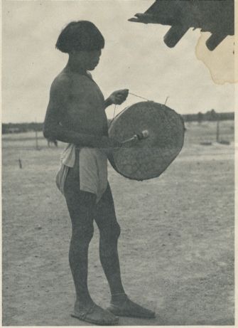 Mexician Indian playing drum ----------------------------- Promo-photo for recording machine used by Henrietta Yurchenco in the field.